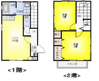 1F:LDK9、浴室、トイレ 2F:洋6・8