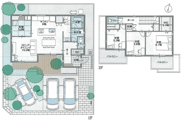 和3.8帖、洋5.3帖、5.8帖、8.1帖、リビングダイニング15.2帖