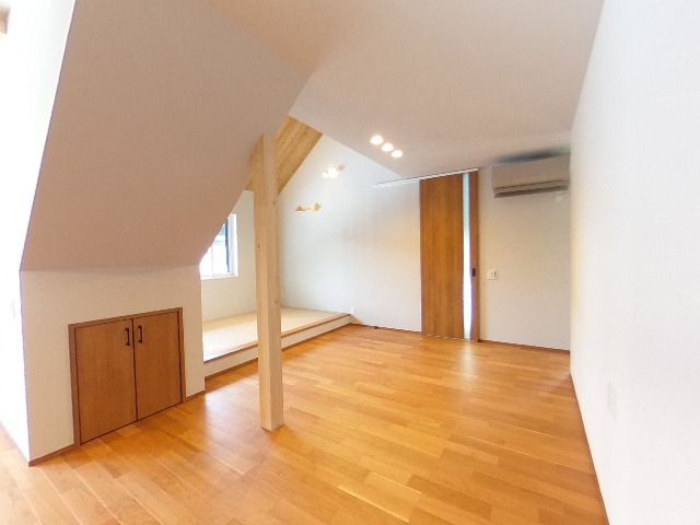 - ZEH仕様の高断熱高気密性能を誇る次世代型の住まい。大容量の太陽光発電搭載のオール電化。ゆったりLDKにはくつろぎのタタミコーナー。WICと水回りを回遊できる家事ラク設計。収納を考え抜いたキッチンからはタタミコーナーのあるリビング全体が見渡せます。2階にも2つの個室を用意。延床31坪とは思えない上下左右への広がり感のある3LDKです。