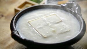 さて、どうしたって主食にはなれない湯奴あらため湯豆腐。例えば4人前3丁ほどの豆腐にネギや油揚げを足し、沸いた湯に小さじ1ほどの重曹を溶かしてみると、これが不思議。あっという間に豆腐の角が溶けてまるで豆乳鍋状態に。