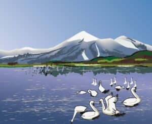 白鳥は目指す北の水辺を、地形を見てたどっているのだろうか? そういえば鮭は生まれ育った川の匂いや磁場を頼りに戻ってくるといいます。自然界の逞しさを前に、ヒトの能力の貧弱さに冒険心が萎えていきます。