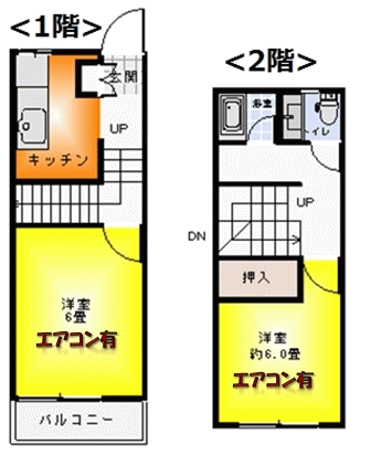 1F:洋6・キッチン 2F:洋6・浴室・トイレ