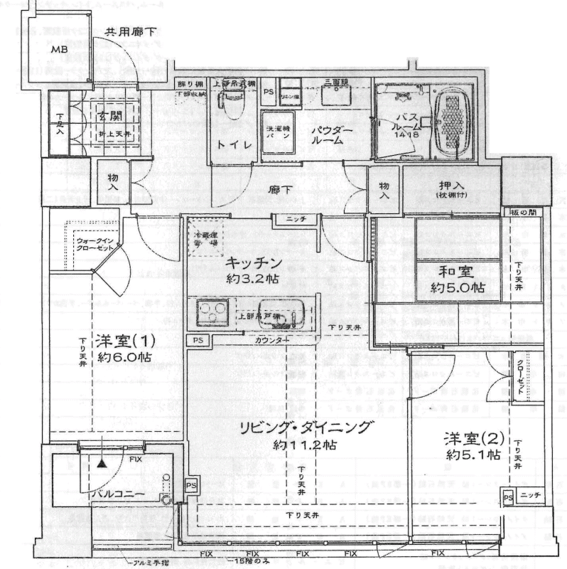 LDK:11.2帖、洋室:6帖・5.1帖、和室:5帖