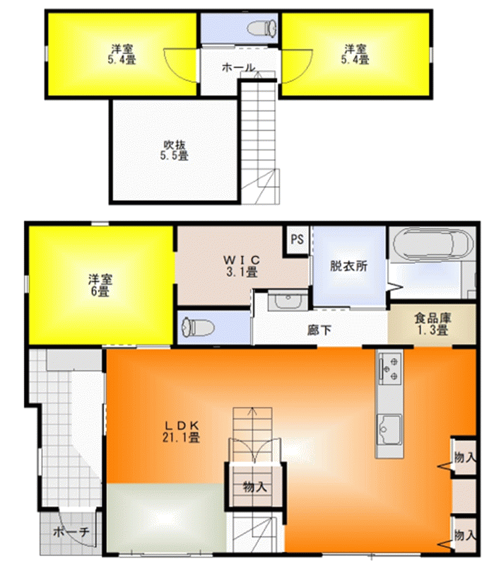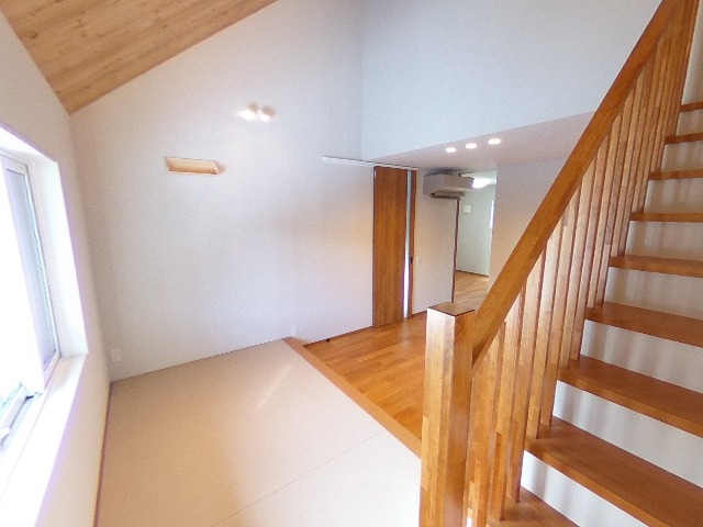 - ZEH仕様の高断熱高気密性能を誇る次世代型の住まい。大容量の太陽光発電搭載のオール電化。ゆったりLDKにはくつろぎのタタミコーナー。WICと水回りを回遊できる家事ラク設計。収納を考え抜いたキッチンからはタタミコーナーのあるリビング全体が見渡せます。2階にも2つの個室を用意。延床31坪とは思えない上下左右への広がり感のある3LDKです。
